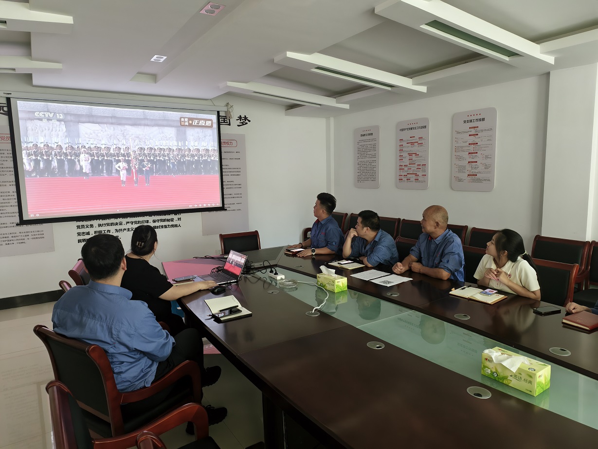 當天上午,大家懷著激動的心情早早來到黨建會議室,等待閱兵儀式正式開始。9時整,閱兵儀式正式拉開帷幕,全體黨員干部共同見證這一神圣時刻。整齊劃一的徒步方隊、威武雄壯的裝備方隊、英姿颯爽的空中梯隊依次通過天安門廣場,接受黨和人民的檢閱。這場精彩的閱兵盛況直擊人心,中國彰顯出的強大國威與日益雄厚的國力,讓在場每一個人都感受至深、備受鼓舞。