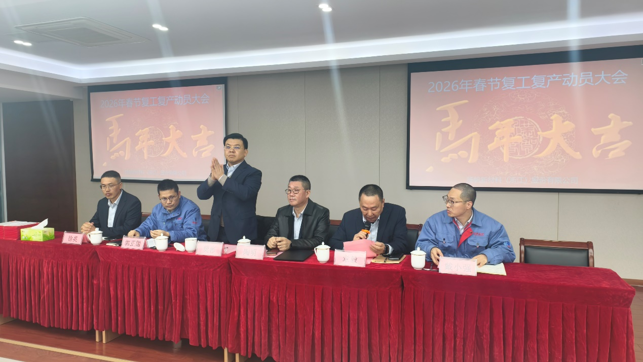新年伊始,萬象更新。2月26日,揚帆新材料(浙江)股份有限公司在研究院三樓培訓室隆重召開復工復產暨安全教育培訓大會,旨在統一思想、凝聚共識,為新一年各項工作開好局、起好步奠定堅實基礎。公司董事長樊彬、總裁陶明、浙江基地生產副總郭正國、公關協調中心總監章毅、總裁助理戴小強等公司領導與全體員工齊聚一堂。大會由章毅主持。